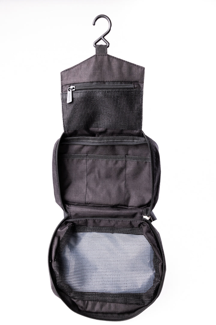 Vores toiltettaske er kompakt, vandtæt og passer perfekt til vores Airpack vakuumtaske. Den kan foldes ud og hænges op når du kommer frem på din destination, så den er overskuelig og nem at bruge. Og den pakkes sammen til en kompakt firkant, så den fylder mindst muligt undervejs på din rejse.